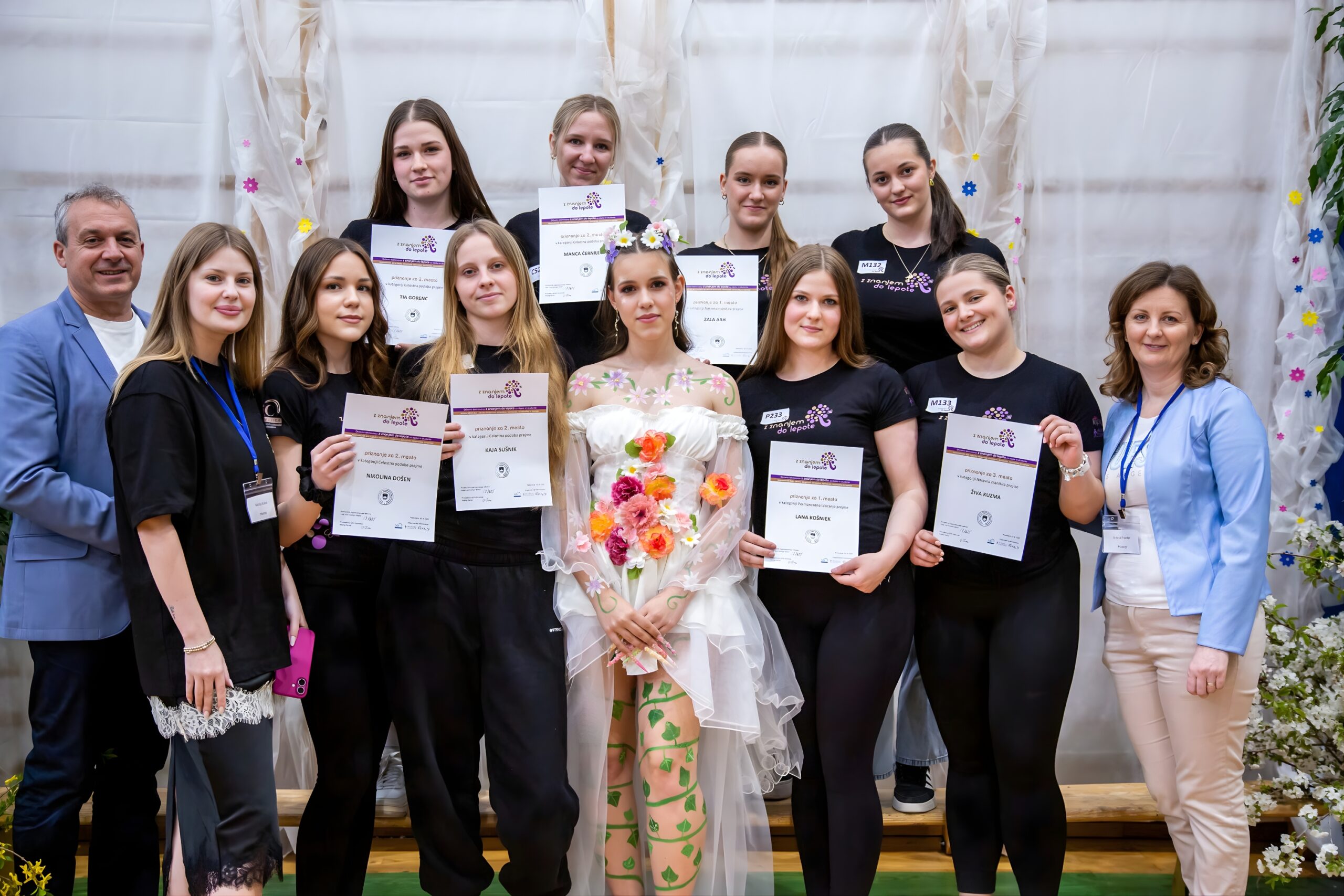 V petih tekmovalnih kategorijah so bile naše dijakinje med najboljšimi v treh kategorijah. V naravni manikiri je Zala Arh iz 2. e KT osvojila 1. mesto, v permanentnem lakiranju je bila prva Lana Košnjek, tretja pa Živa Kuzma, obe dijakinji 2. g KT. Tema ličenja je bila čebelja kraljica, pri celostni podobi pa so dijakinje ustvarjale boginjo pomladi. Ocenjevalci so kot najlepšo izbrali boginjo iz Srednje zdravstvene in kozmetične šole Celje, na drugo mesto pa sta se uvrstili boginji iz Srednje zdravstvene in kemijske šole Novo mesto in iz SiC Radovljica. Naše dijakinje iz 3. g KT – Manca Černilec, Nikolina Došen, Tia Gorenc in Kaja Sušnik so čudovito boginjo pomladi prikazale kot ženstveno, milo in nežno slovansko boginjo Vesno. Izjemni izdelki so nastali v tudi v kategoriji Nail art v škatlicah na temo medovitih cvetlic. Vsem dijakinjam in mentoricama Ireni Frantar in Nastji Kuhar iskreno čestitamo!